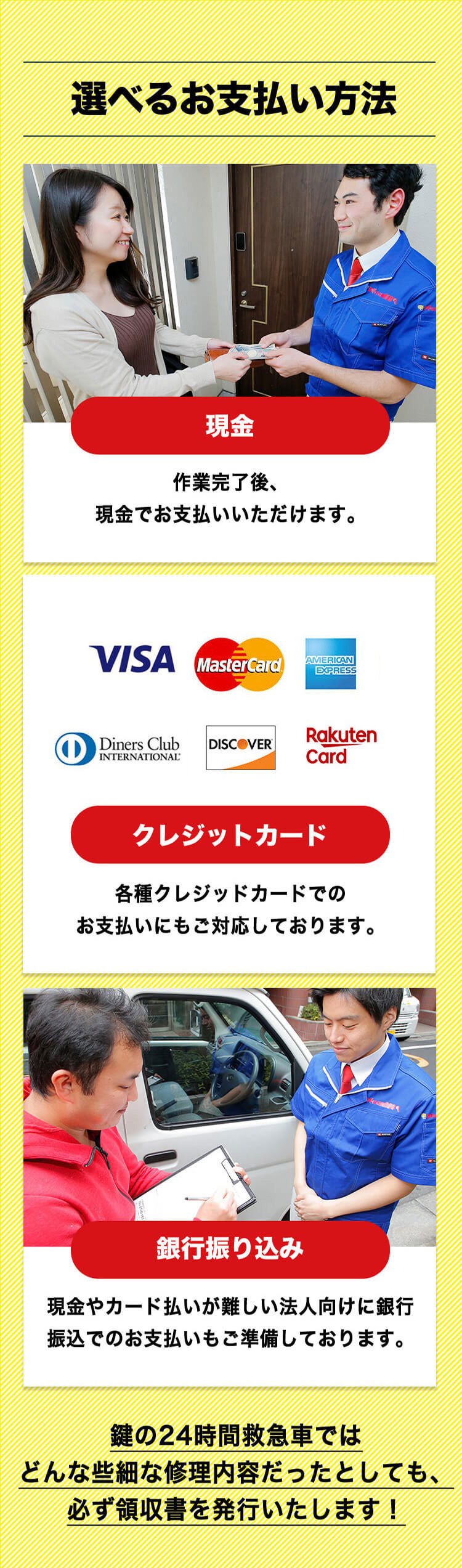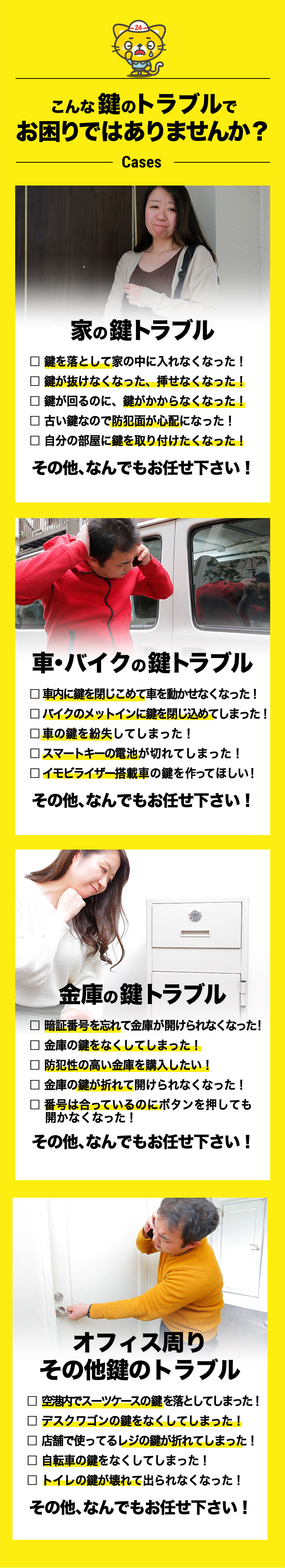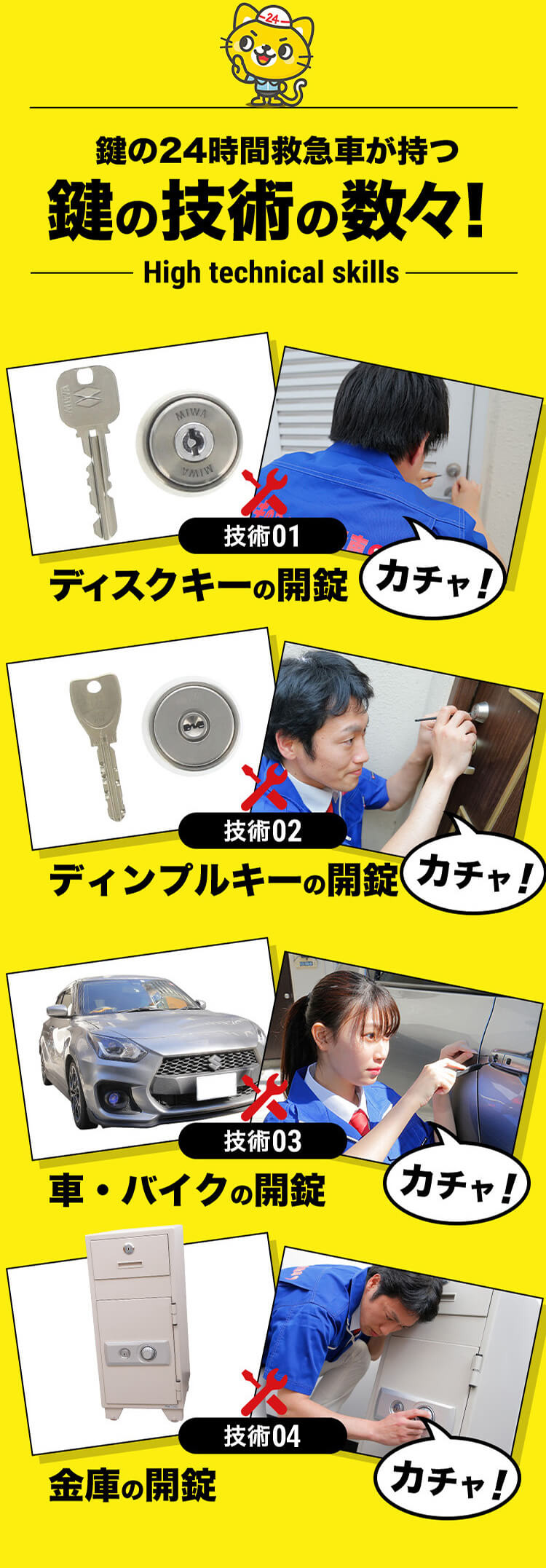鶴見区店では、スタッフが地元の鶴見緑地でのジョギングを通じて体力と精神力を鍛えています。この持続的なエネルギーをもって、鍵開け、鍵交換、鍵修理のサービスを24時間提供。鶴見区で確かな技術と迅速な対応をお求めの方は、当店をお選びください。